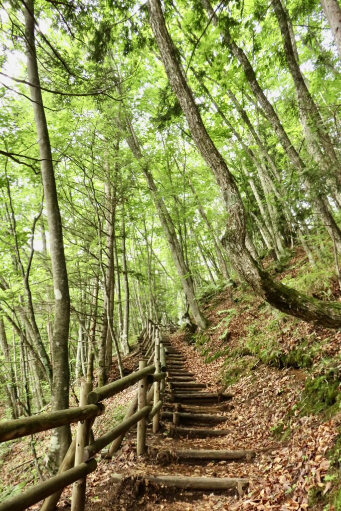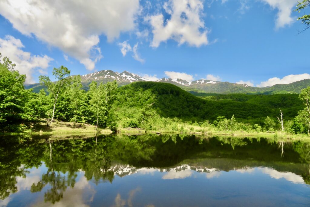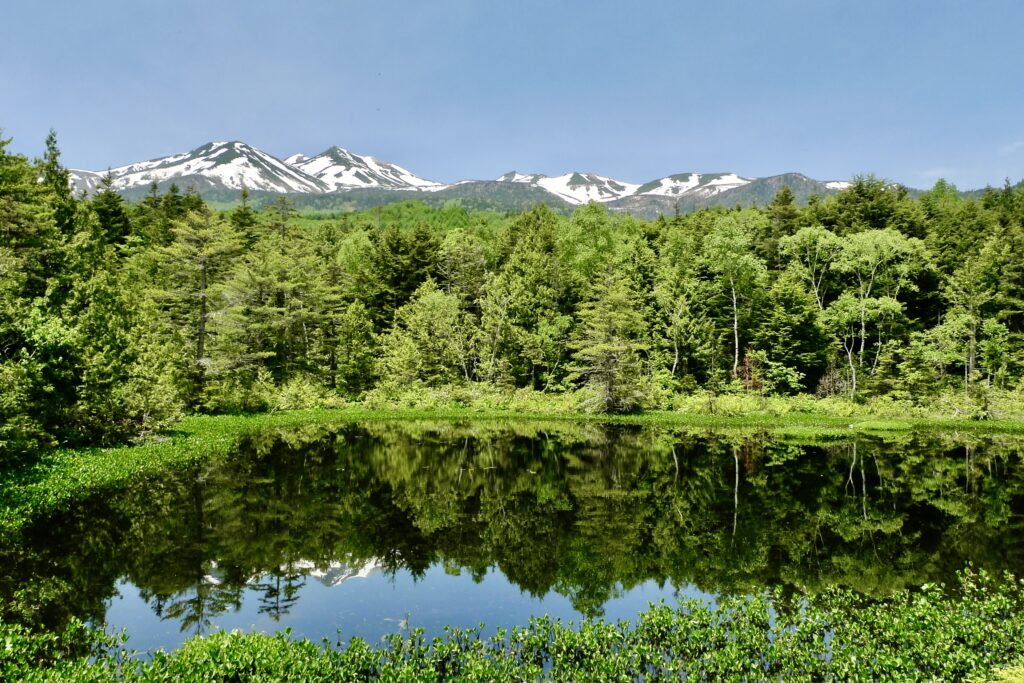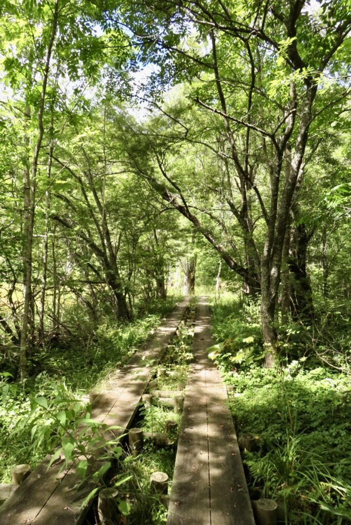 点在する池に映り込む乗鞍岳の景色を楽しんだり、森の中に差し込む木洩れ日の眩しさや